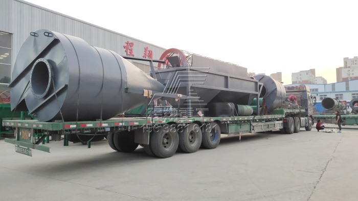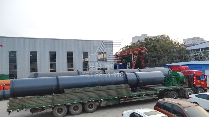 第一車與第二車裝載的是烘干、冷卻機(jī),滾筒烘干機(jī)的直徑為1.5米,長(zhǎng)度15米,回轉(zhuǎn)式冷卻機(jī)的型號(hào)小一號(hào),直徑為1.4米,長(zhǎng)度為14米。