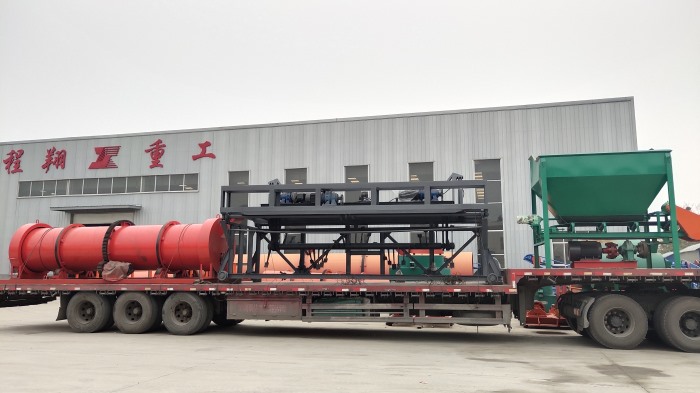 查看 > 20 2020/11由于該豬糞秸稈有機肥料生產(chǎn)線產(chǎn)量較大,因此分為多車裝置運輸。主要的豬糞加工設(shè)備有:大型秸稈粉碎機、履帶式翻堆機、臥式攪拌機、新型三合一造粒機、不同型號的滾筒篩分機以及多個型號的烘干冷卻設(shè)備。滾筒烘干設(shè)備風(fēng)頭以及風(fēng)機安置熱風(fēng)爐以及冷卻設(shè)備多個烘干冷卻設(shè)備履帶式翻堆機以及大型秸稈粉碎機二次烘干設(shè)備滾筒篩分機以及鏟車喂料倉本次豬糞秸稈有機肥料生產(chǎn)線工藝設(shè)計流程為:利用大型秸稈粉碎機將稻草秸稈等粉碎均勻,