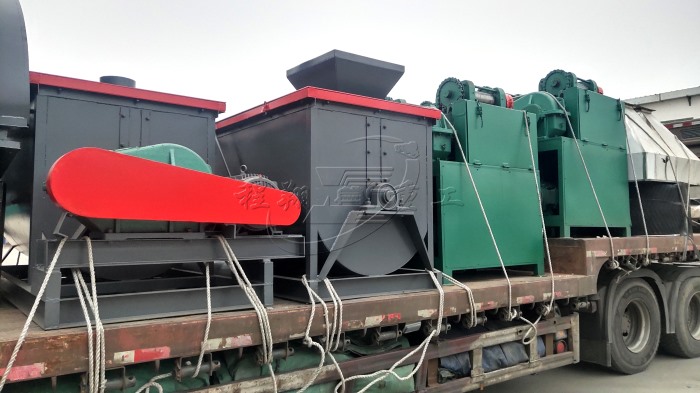 查看 > 20 2020/11由于該豬糞秸稈有機肥料生產(chǎn)線產(chǎn)量較大,因此分為多車裝置運輸。主要的豬糞加工設(shè)備有:大型秸稈粉碎機、履帶式翻堆機、臥式攪拌機、新型三合一造粒機、不同型號的滾筒篩分機以及多個型號的烘干冷卻設(shè)備。滾筒烘干設(shè)備風(fēng)頭以及風(fēng)機安置熱風(fēng)爐以及冷卻設(shè)備多個烘干冷卻設(shè)備履帶式翻堆機以及大型秸稈粉碎機二次烘干設(shè)備滾筒篩分機以及鏟車喂料倉本次豬糞秸稈有機肥料生產(chǎn)線工藝設(shè)計流程為:利用大型秸稈粉碎機將稻草秸稈等粉碎均勻,