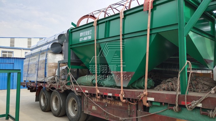 本次發(fā)貨的主要設(shè)備有:有機(jī)肥廠專用除臭罐、鏈?zhǔn)椒鬯闄C(jī)、滾筒篩分機(jī)(3臺兩級篩分機(jī)以及1臺三級滾筒篩)、圓盤式造粒機(jī)(2臺)、有機(jī)肥濕法攪齒造粒機(jī)、柱狀擠壓造粒機(jī)以及自動(dòng)包裝秤等等。(因車長不夠,有機(jī)肥液壓槽式翻堆機(jī)已由前天的小車發(fā)走。)