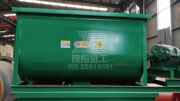 4、混合攪拌:臥式攪拌機,主要起到均勻攪拌的作用,主要方便后期的造粒,有利于顆粒營養(yǎng)元素分布均勻,也起到均勻給料的作用。