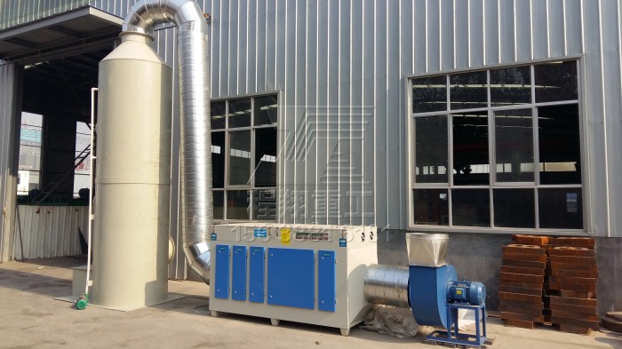 除臭系統(tǒng)的接口主要和外部的烘干機連著,除臭系統(tǒng)主要有噴淋塔(主要作用是防揚塵)、彎頭、引風機/水泵等組成。