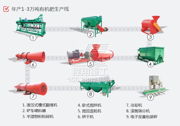 年產(chǎn)1-3萬噸的有機(jī)肥生產(chǎn)線成套設(shè)備
