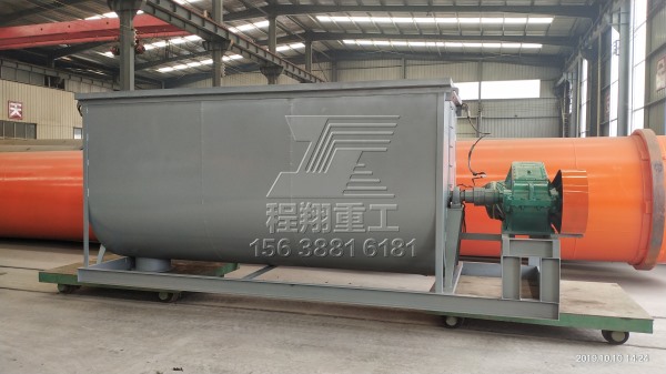 本次發(fā)貨的豬糞有機(jī)肥生產(chǎn)線主要設(shè)備有:鏟車喂料、臥式攪拌機(jī)、有機(jī)肥濕法造粒機(jī)、滾筒篩分機(jī)以及烘干設(shè)備。BB肥攪拌機(jī)作為拋圓設(shè)備使用