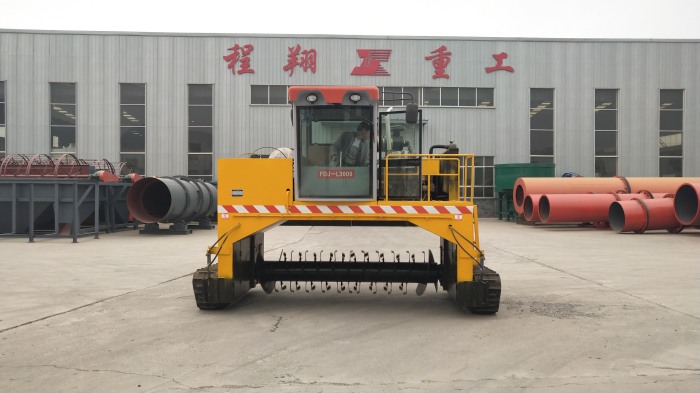 條垛翻堆作業(yè)建議采用專業(yè)的翻堆機,替代高強度人工翻堆或鏟車翻堆。機械化高效連續(xù)翻堆作業(yè)可顯著改善三角形或梯形料堆的通風供氧,從而加快物料發(fā)酵腐熟和去除水分。該翻堆機一般應具有破碎、攪拌、翻拋和堆垛功能。其結(jié)構(gòu)特點表現(xiàn)為:翻拋滾筒可液壓升降,便于調(diào)節(jié)地隙;滾籬螺旋葉片可拆卸,維修更換便捷;采用液壓馬達驅(qū)動履帶,附著力好,接地比壓小,地面通過能力強;采用履帶行走占地少,轉(zhuǎn)彎靈活,可以原地掉,提高物料堆放場地利用率。
