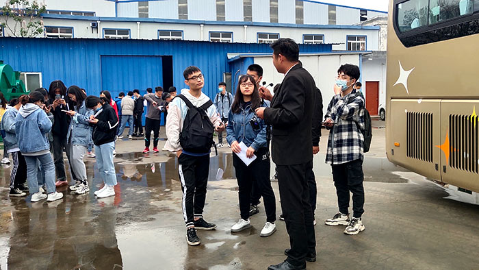 王經(jīng)理正在為同學(xué)們講解轉(zhuǎn)股造粒機的內(nèi)部構(gòu)造