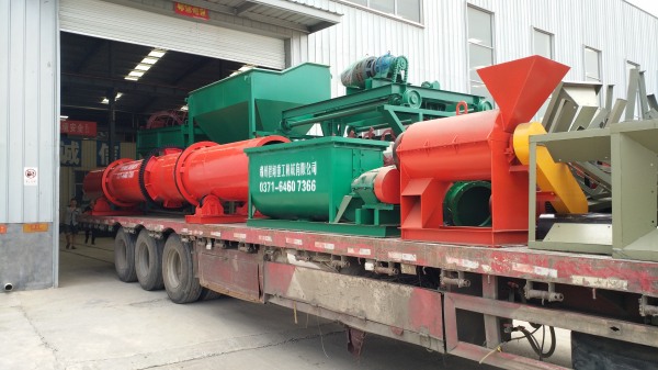 年產(chǎn)1萬噸的雞糞有機肥加工設備發(fā)貨現(xiàn)場