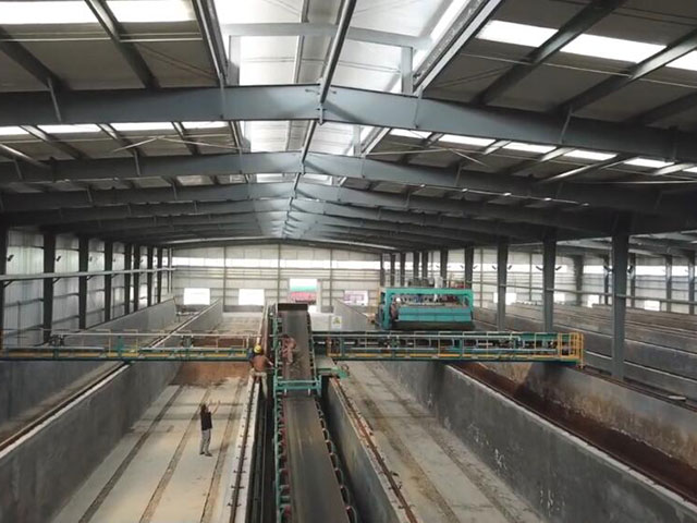 a、槽式好氧發(fā)酵:這是目前處理豬糞比較有效的方法,也適合豬糞有機(jī)肥商品化生產(chǎn),有利于標(biāo)準(zhǔn)化生產(chǎn)。它利用生物學(xué)特性結(jié)合機(jī)械化技術(shù),利用自然微生物或接種微生物將豬糞完全腐熟并將有機(jī)物轉(zhuǎn)化為有機(jī)質(zhì)、二氧化碳與水,這種方法發(fā)酵時(shí)間短,一般15天左右就能使豬糞發(fā)酵腐熟,而且易實(shí)現(xiàn)工廠化規(guī)模生產(chǎn),不受天氣季節(jié)影響,對(duì)環(huán)境造成的污染小,有利于豬糞有機(jī)肥的商品化生產(chǎn)。根據(jù)設(shè)備不同,發(fā)酵槽的寬度一般為3-20m,深度一般為0.8-1.5m,長(zhǎng)度在50~100m,可據(jù)實(shí)際情況設(shè)計(jì)。