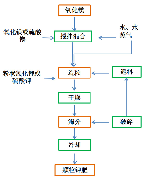 制備顆粒鉀肥的原料:粉狀氯化鉀(0-0-60)或粉狀硫酸鉀(0-0-50);黏結(jié)劑,包括氯化鎂、硫酸鎂、氧化鎂、苦土粉;填充料,包括黏土、膨潤(rùn)土、石膏等。