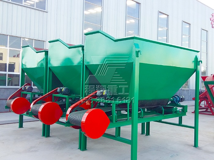 本次牛糞全套有機肥料設(shè)備生產(chǎn)工藝采用槽式好氧發(fā)酵,利用翻堆槽發(fā)酵既干凈又能最大化的利用有限的場地,增加糞便處理量。由于客戶對于顆粒有機質(zhì)含量以及NPK有特殊要求,因此我們?yōu)榭蛻魧iT定制了一臺三倉的靜態(tài)配料系統(tǒng)。
