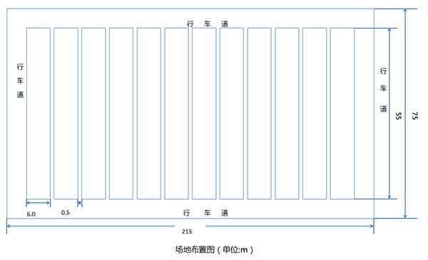 翻堆場地寬: 195+20=215m(場地兩側(cè)各留1 0米運轉(zhuǎn)空間)